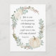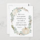 Thanksgiving inspirational quote scripture customised postcard depicts an elegant floral watercolor wreath design with simple white flowers, pumpkin and greenery. It features Bible Verse Psalm 95:2, "Let us come into his presence with thanksgiving; let us make a joyful noise to him with songs of praise!"