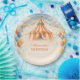 This whimsical circus birthday design features a storybook-style big top tent, pastel balloons, festive bunting, and soft confetti details. Inspired by vintage fairgrounds and playful carnival magic, the artwork feels joyful, warm, and timeless. Perfect for a child’s birthday celebration, this design creates a charming circus atmosphere without feeling loud or overstimulating—sweet, celebratory, and keepsake-worthy.