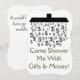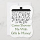 This silly wedding shower design features a shower head emitting dollar signs ($) above the message "Come Shower Me With Gifts & Money!"