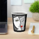 The original digital painting by Leslie Sigal Javorek on this eye-catching paper cup is an intriguing, Art Deco style optical illusion inspired by Janus, the Roman god of gates & doors, beginnings & endings, war & peace & significant transitions. According to Feng Shui principles, the yin & yang of Janus brings a pleasing balance.