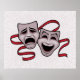 Vector illustration of comedy and tragedy theatre masks with a red ribbon.