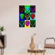 Happy face, sad face. These brightly coloured classical theatre face masks in a pop art style show the contrasting emotions of comedy and tragedy.