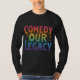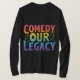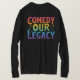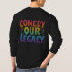 This t-shirt features the phrase "Comedy Our Legacy" in a playful, multicolored gradient. Each word is a different vibrant shade, creating a fun and energetic look.