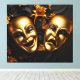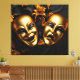 Against a sophisticated black canvas, two iconic theater masks emerge in resplendent gold, capturing the essence of both comedy and tragedy. One mask is adorned with a jubilant expression, a symbol of mirth and amusement, while the other bears a solemn visage, embodying the depths of sorrow and drama.