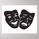 A happy face and a sad face make up this pair of black, drama theater, comedy tragedy masks.