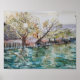A watercolour of autumn reflection of the trees on the river Sado in Setúbal, Portugal. This landscapes is valores Comenda.