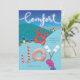 Comfort and Joy is expressed in this holiday card through fun illustrations of a candy cane, donut and marshmallows on a twig for s'mores. These treats spell out the word "Joy". There is also a cozy mood to this design with its comfort food, red scarf and homes on snowy hills. Share your warm and cozy holiday with friends and family when you add your own greeting and name to this Hygge style card.