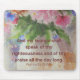 This is a comforting Bible theme mouse pad, share faith and comfort this year. It is a great birthday gift or a Christmas gift. The background design is a vase of flowers and the words are in a shade of dusky pink.