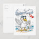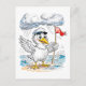 A focused coastal bird measures the wind at the beach, feathers fluttering as it studies the breeze with comic determination. This playful maritime illustration blends seaside atmosphere with quirky humor, perfect for coastal décor and whimsical character art.