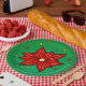 Bold, bright pop art / comic book red poinsettia on a green background with stars.