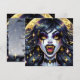 Halloween invitations. Black and gold vampire with golden fangs and eyes comic book pop art ai art. Cool for Halloween or anyone who loves vampires..