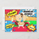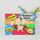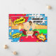 Pow! It's A Boy! A cute superhero baby with blue pacifier and red cape proudly announces the birth of your little hero. Customise it with your baby's name, time of birth, and weight.