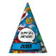 Customise with the name of the birthday girl or boy and all the party details. A fun cool comic book superhero birthday hat that puts the wham, zap, pow into any superhero's birthday celebration event. Designed by Thisisnotme©