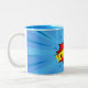 Comic book superhero blue, red and yellow custom coffee mug. Personalise for the super hero fan in your life.