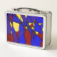This is a standard metal lunchbox that appears to work just fine. We designed this box ourselves with an uploaded photo and custom text on the front and back. It looks absolutely beautiful except the front of the lunchbox is not centered like it shows in the photo. The print borders don't align with the inset flat part of the box where the preview photo online showed it perfectly centered in there. The back looks nice and centered though.