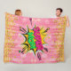 Comic Style Pop Art Retro Pink Gold Super Mum Fleece Blanket