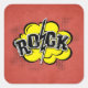 Comic style rock illustration with yellow cloud and halftone decoration on red grunge background