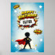 Make a child’s birthday extra special with this fun superhero comic style birthday poster sign! Featuring bold 3D lettering, playful POW, ZAP & WOW elements, and a heroic character design, this poster is perfect for little heroes who love action and adventure. It can be personalized with any name, making it a unique keepsake for birthdays.
