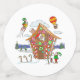 This festive table confetti features a fun, comical, and colourful illustration of Santa in a candy covered gingerbread house. Notice the elves ice skating, waving to Santa, riding in a hot air balloon, and even riding a rocket.