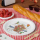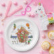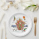 These paper plates feature a fun, comical, and colourful illustration of Santa in a candy covered gingerbread house. Notice the elves ice skating, waving to Santa, riding in a hot air balloon, and even riding a rocket.