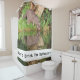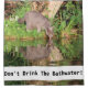 Comical shower curtain with a cat drinking. Personalise the text - don't drink the bathwater message to suit your decorating style.