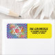 Unique and fun pop art comics comic book star of David Bar Mitzvah return address mailing label. This comic book Bar Mitzvah address label is modelled after a comic strip like you'd see in the comics section of a newspaper or what you'd see in superhero comic books. It's done up in the pop art comic book style with bright colours, sunbursts and Jewish Star of David. The colours on this comic book themed Bar Mitzvah mailing label are bright blue, red, yellow, green, orange pink, black, and white.