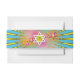 Unique and fun pop art comics comic book Star of David Bar Mitzvah personalised invitation belly band. This comic book Bar Mitzvah personalised invitation belly band is modelled after a comic strip like you'd see in the comics section of a newspaper or what you'd see in superhero comic books. It's done up in the pop art comic book style with bright colours, sunbursts and Jewish Star of David. The colours on this comic book themed Bar Mitzvah personalised invitation belly band are bright blue, red, yellow, green, orange pink, black, and white.