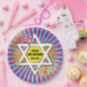 Unique and fun pop art comics comic book Star of David Bar Mitzvah personalised paper plates. This comic book Bar Mitzvah personalised paper plate is modelled after a comic strip like you'd see in the comics section of a newspaper or what you'd see in superhero comic books. It's done up in the pop art comic book style with bright colours, sunbursts and Jewish Star of David. The colours on this comic book themed Bar Mitzvah personalised paper plate are bright blue, red, yellow, green, orange pink, black, and white.