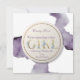 Celebrating the news of having a baby girl is easy to share with family and friends with this beautiful announcement. This design features washes of purple watercolor, along with gold serif letters embellished with flowers. Easily personalise this template and send your message with elegance.
