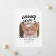 A great way to announce your exciting news with a favourite photo pregnancy announcements card that has a black bold script text overlay with the saying "coming soon." Personalise with your name and the expected due date.