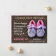 This sweet Pregnancy Announcement card is the perfect way to share your special news with family & friends! It can be easily personalised with all of your details. This card features the text "Coming Soon. We are happy to announce that we're expecting a baby girl!" with a cute baby shoes photo in pink and purple. The back side has a pretty coordinating designer pattern.