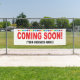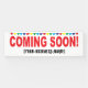 Coming Soon with attention-getting colourful flags and large red type. Business Opening Sign Banner to advertise that a new business will soon be opening in a location. Edit the name line to your own information. Change the background colour if you like.