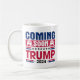 Show your support for your favourite Presidential candidate with this coffee mug featuring text image "Coming Soon Trump 2024".