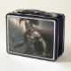 This is a standard metal lunchbox that appears to work just fine. We designed this box ourselves with an uploaded photo and custom text on the front and back. It looks absolutely beautiful except the front of the lunchbox is not centered like it shows in the photo. The print borders don't align with the inset flat part of the box where the preview photo online showed it perfectly centered in there. The back looks nice and centered though.
