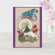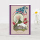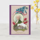 A portrait of George Washington surrounded by American flags, cherries and his home of Mount Vernon from a patriotic postcard circa 1914.