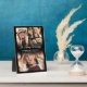 Personalised picture memorial plaque featuring a black background, 4 treasured photos, the saying "in loving memory", their name, and dates.