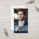 Modern chic business card featuring your photo overlaid with your profession and name in bold, trendy typography. The back includes space for your website URL to create a scannable QR code and personalised contact information.