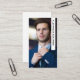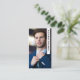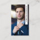 Modern chic business card featuring your photo overlaid with your profession and name in bold, trendy typography. The back includes space for your website URL to create a scannable QR code and personalised contact information.