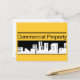 Simplistic buildings in black and white. "Commercial Property" above and a line above that. Customise as you like to include your company's name and contact information.