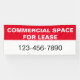 The top line of the display text is white and says Commercial Space for Lease. The bottom line has black display digits for a phone number. All text can be edited or deleted.