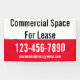 This is a template banner. Commercial Space For Lease appears in bold black text at the top. You can edit the text if needed. The sign is red at the bottom and has white text and digits for your phone number and email address.