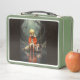 This is a standard metal lunchbox that appears to work just fine. We designed this box ourselves with an uploaded photo and custom text on the front and back. It looks absolutely beautiful except the front of the lunchbox is not centered like it shows in the photo. The print borders don't align with the inset flat part of the box where the preview photo online showed it perfectly centered in there. The back looks nice and centered though.