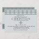 The soft blue background has a top border of an intricate cross ribbon trimmed in dark teal. Suitable for any religious celebration.