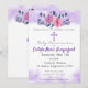 Touch of purple and beautiful watercolor flowers for this religious invite.