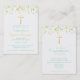 This festive and modern design is perfect for your child’s First Holy Communion. The background consists of a white background accented with mint and gold round confetti and an ornate gold cross. This collection is simply beautiful. Check out the matching accessories, gifts, party favours and stationery.