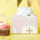 Communion Pink with Gold Polka Dots. This beautiful and elegant First Holy Communion design is featured in a gold polka dot and pink background with a delicately place golden cross. Cherish the great memories of your child’s first holy communion with this beautiful design. Check out the matching First Holy Communion accessories, stationery, and communion gifts.
