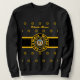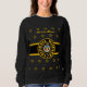 Sweatshirt black with gold, black and white concentric-circles design, above a black and gold rectangle with "COLUMBIA, MISSOURI CENTER OF THE UNIIVERSE" with The Great Seal of Missouri at the centre and with Y-NOT-ME logos in the background. This design is a shout-out to Columbia, Missouri, a city on the move.