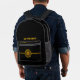 Backpack black with brown and gold Y-NOT-ME logo in front, with gold horizontal line behind with "GO TIGERS!!!" "GO AHEAD-YOU CAN DO IT" at the top front. This design is a shout-out to Missouri`s great sports program.