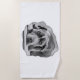 The steady eyes of a resting dog stretch across this towel, turning beach or pool days into moments filled with trust and quiet presence.