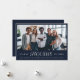 Send professional holiday greetings with the Company Business Photo Christmas Cards With Logo. This sleek and modern design features a group photo framed in navy blue with elegant typography for the holiday message. The back of the card includes space for your logo and a personalised thank you note, making it perfect for corporate clients and partners. Ideal for businesses looking to convey warm holiday wishes while maintaining a polished and professional look, this card reflects the spirit of the season with a touch of sophistication.